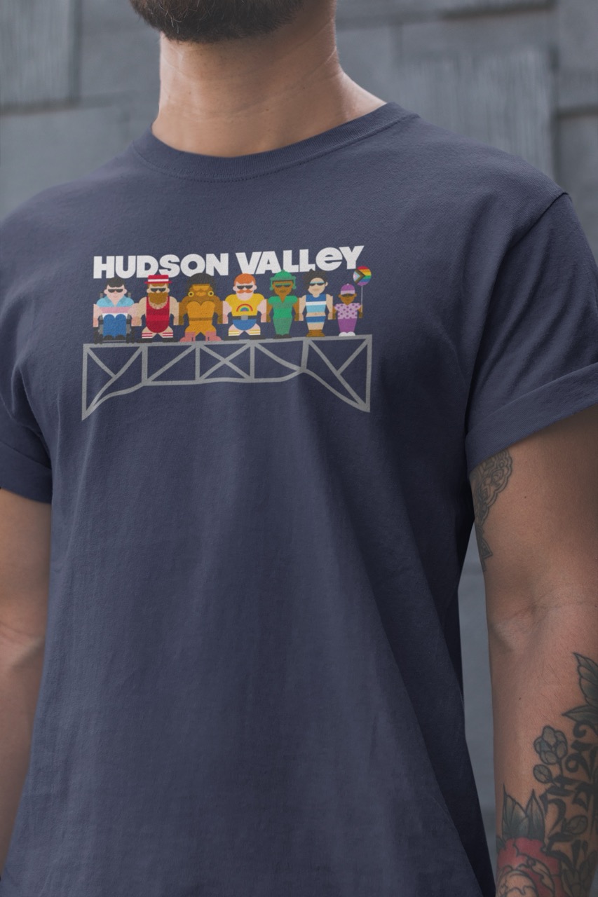 Big Gay Hudson Valley has partnered with our friends at the LGBTQ+ owned Mischief Mates to create a new shirt for Pride In The Sky 2026 that celebrates the diversity of our community spanning the Walkway Over The Hudson.