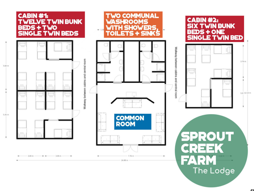 You’ll be assigned a bunk when you arrive for registration at Sprout Creek Farm. If you book your registration as a group, we’ll be sure to assign you a bunk near to your friends. If you have a special request for whom you would like to bunk with, you can include their name when you register for the event. Please note that the cabins may be co-ed and the restrooms/showers are gender neutral.