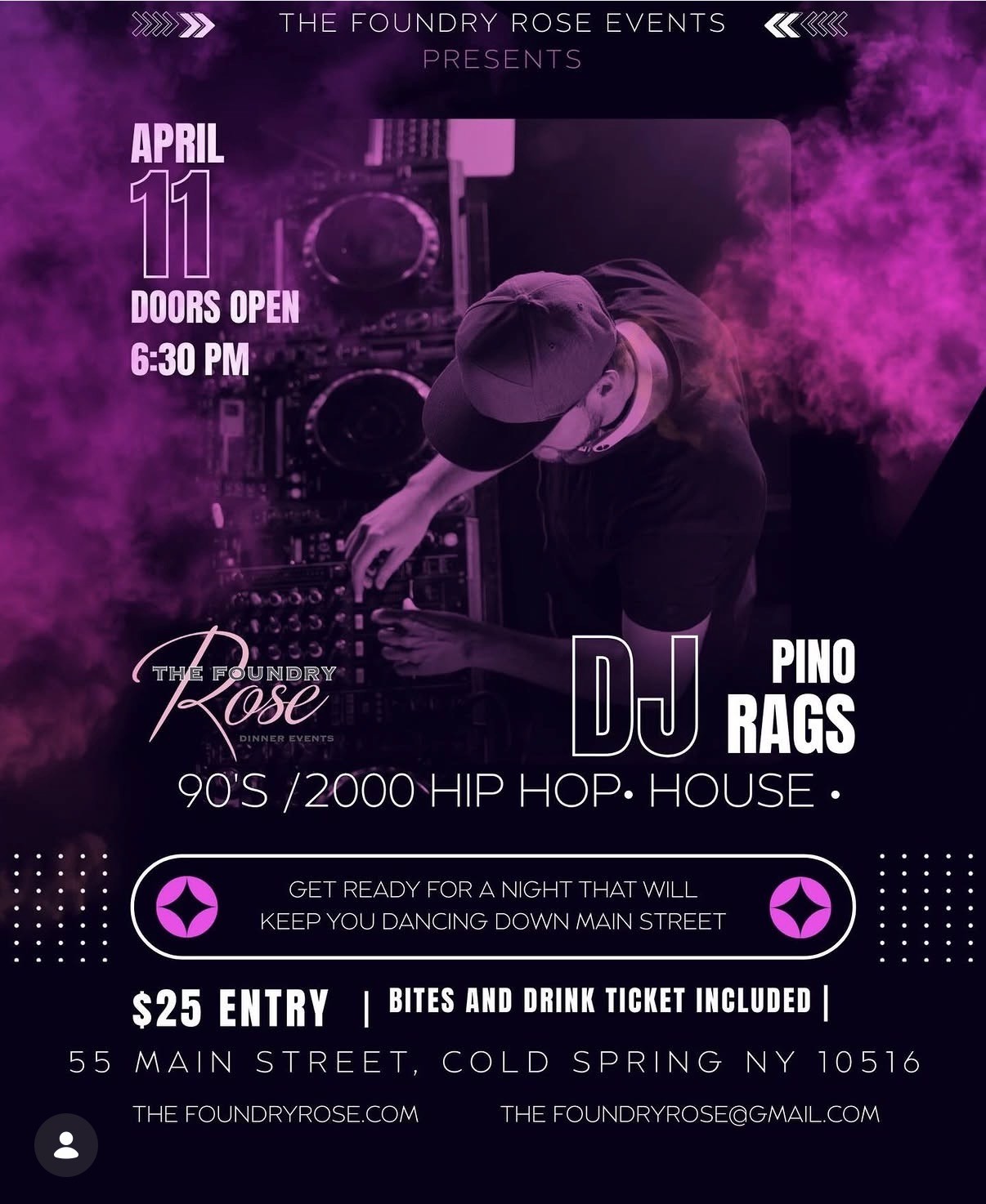 Join us on the dancefloor as DJ Pino Rags spins your favorite tunes from the 90s and early 00s! $25 entry gets you a drink ticket and bites. All are welcome and hope to see you there!