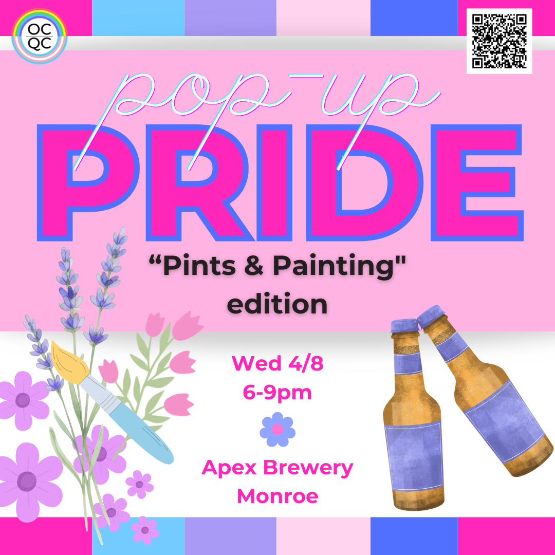 Join Orange County Queer Collective and like-minded folks in your community on Wednesday, April 8th for our monthly Pop-up Pride event at Apex Brewery in Monroe! Our April Pop-Up’s theme is “Pints & Painting” and we are inviting you to join us with a pint (alcoholic or NA) and do some foam painting with other crafty queers.