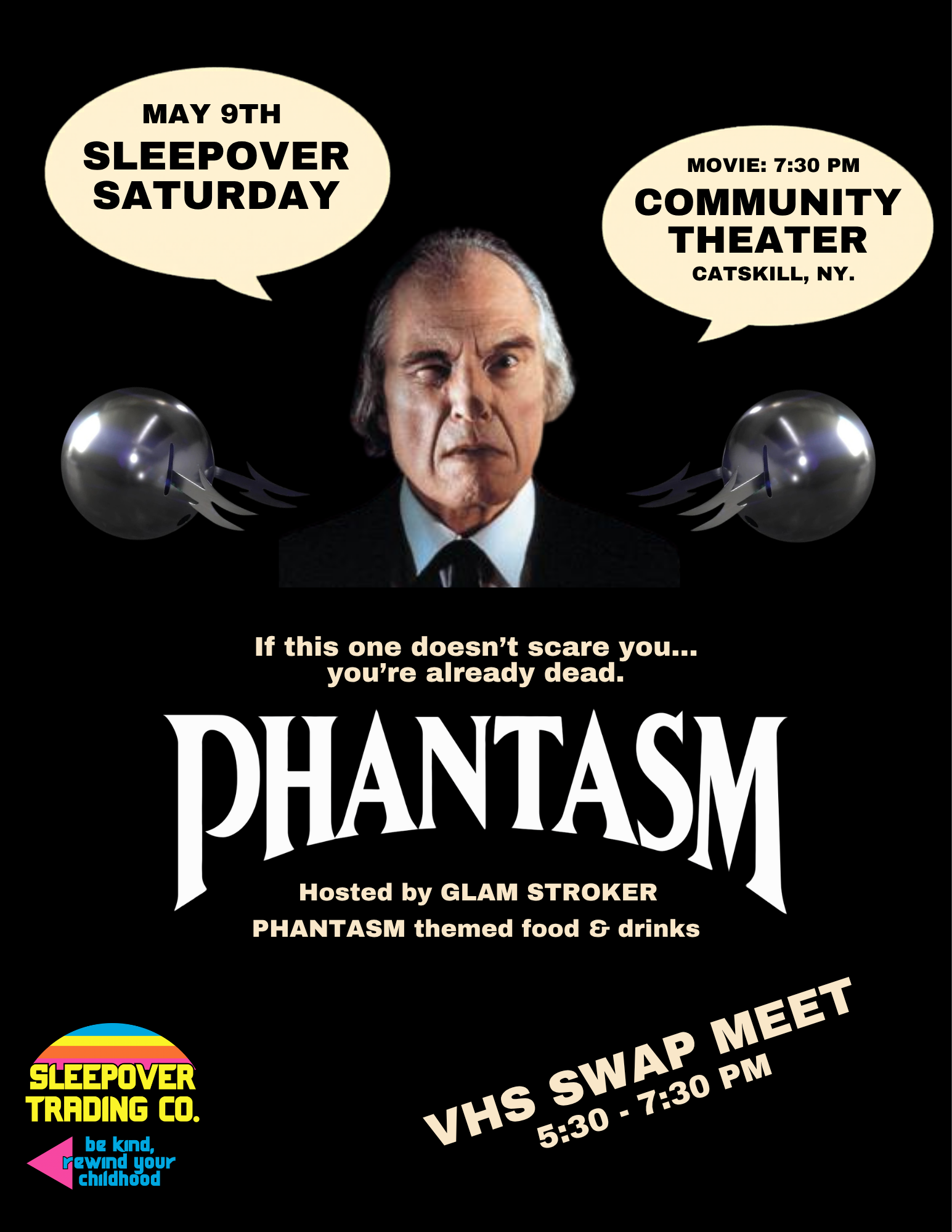 Come early for a VHS swap from 5:30-7:30pm along with Phantasm-themed food and drinks. Bring your tapes to trade and upgrade your collection. The movie will kick off at 7:30pm with your drag horror host Glam Stroker and more surprises.