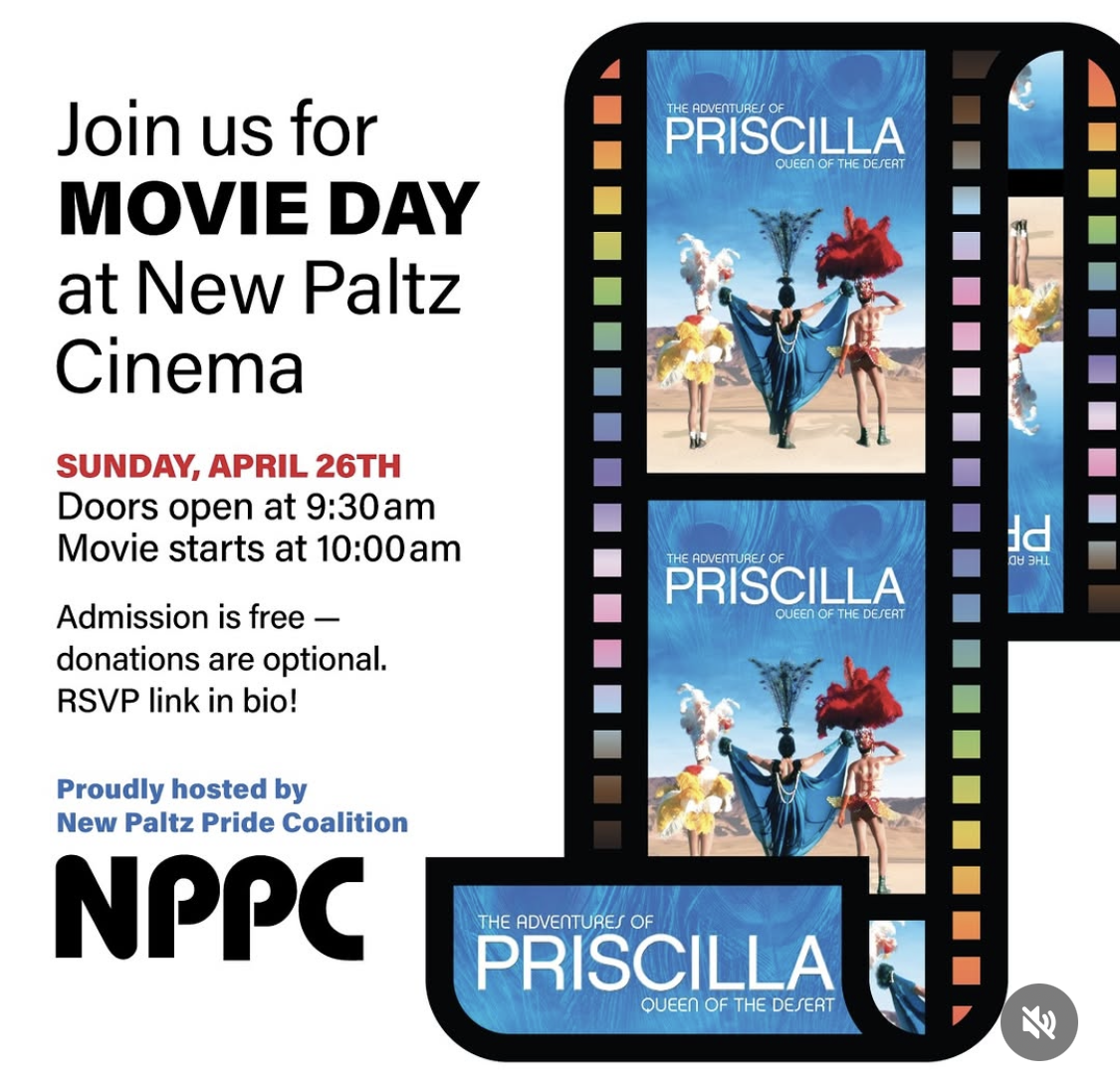 The New Paltz Pride Coailition welcomes the community to start the day with a FREE film focused on the importance of friendship and community – doors open at 9:30am and the film starts at 10am.