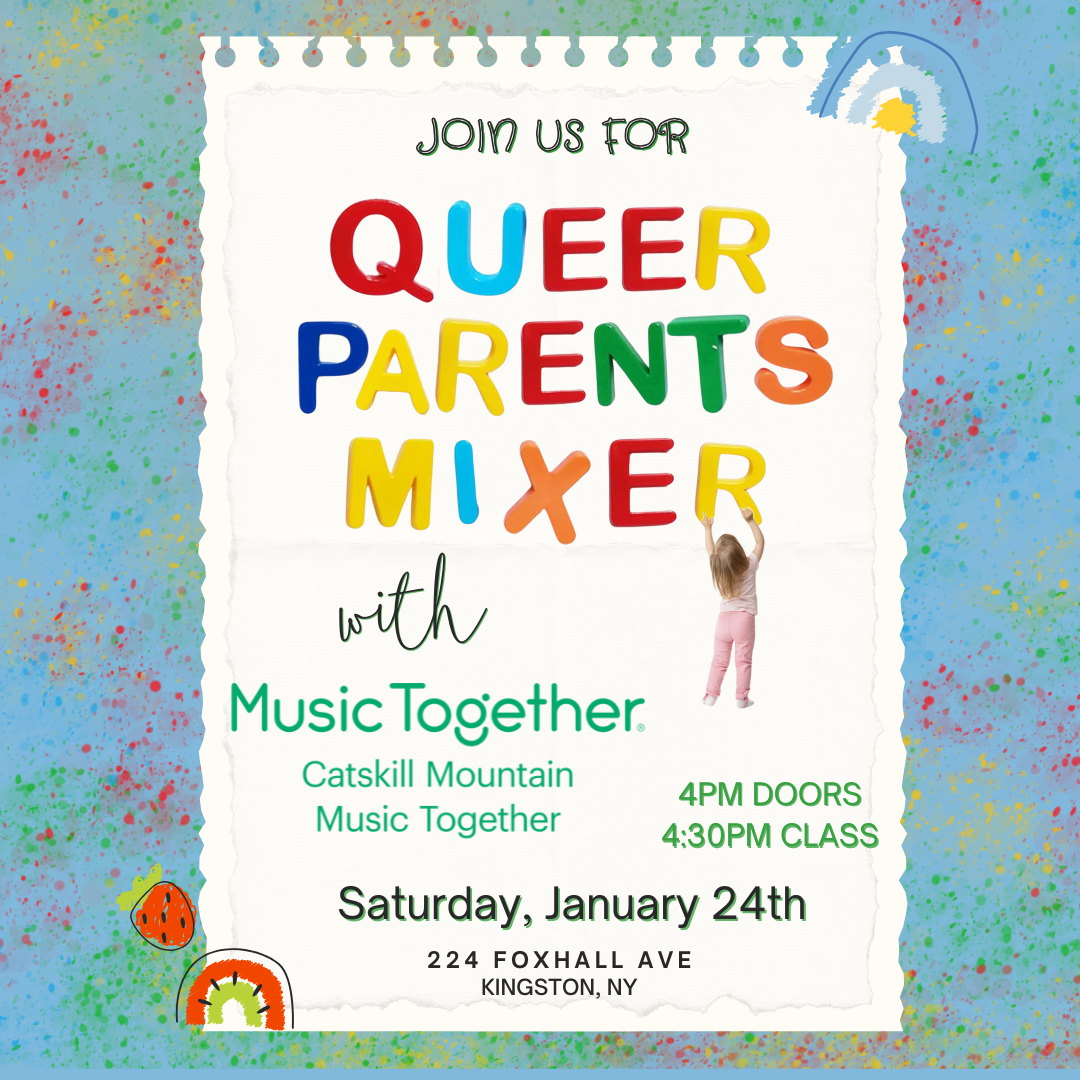 Join us on Sunday, January 24th, from 4-6PM, for the return of our Queer Parents Mixer with Catskill Mountain Music Together! Bring your kiddos to our ballroom to sing, dance, and build community in a queer space. It truly warms our hearts here at Unicorn Bar to see a future generation of loving, compassionate, and curious little individuals and the incredible people raising them.