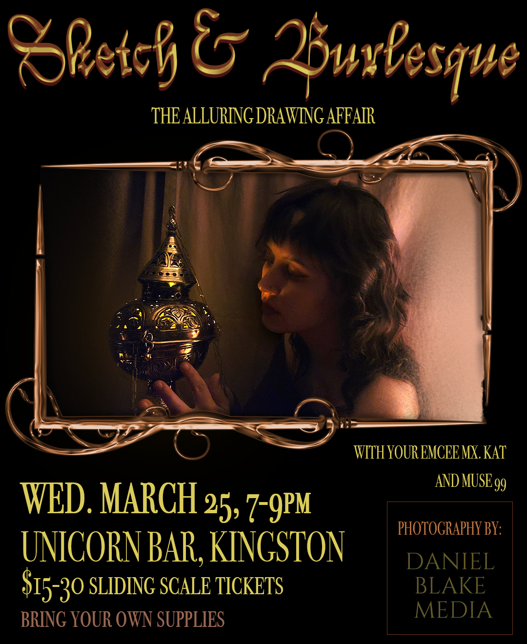 March’s “Sketch & Burlesque” event will include a special guest: local photographer & artist Daniel Blake of “Daniel Blake Media” will be behind the lens, capturing the ethereal atmosphere & enchanting details of the evening. Blake is no stranger to queer community events, and works to create safe environments & space for expression– the perfect pairing!