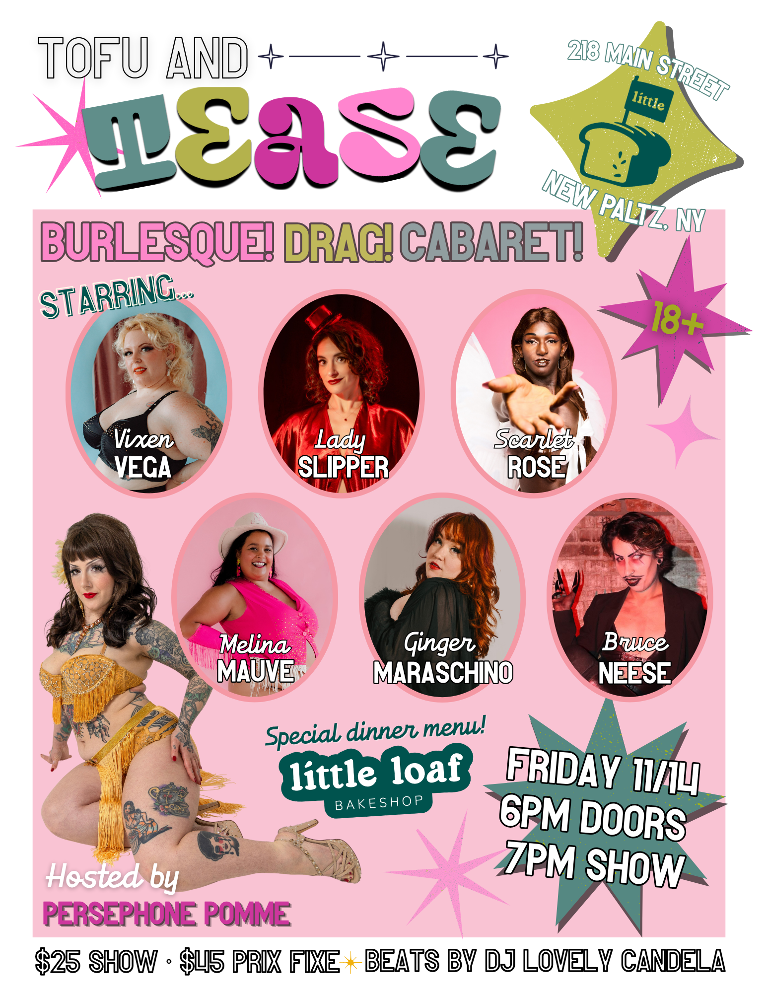 Join us at Little Loaf Bakeshop in New Paltz on Friday, November 11th for a special evening edition of TOFU & TEASE!