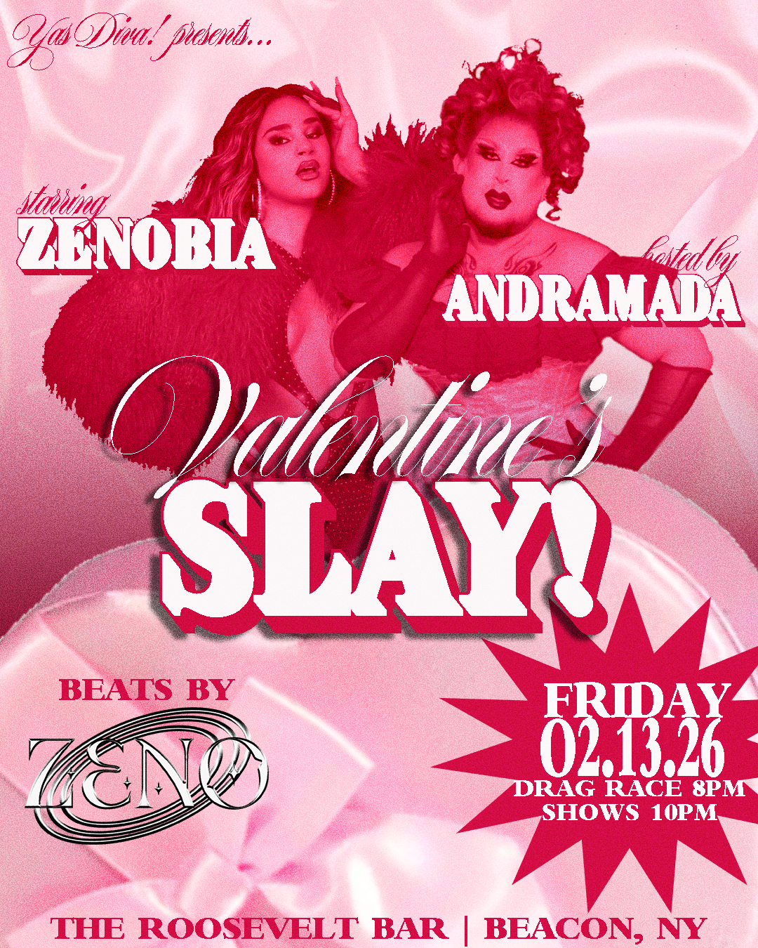 Join us for Yas Diva: Valentine’s Slay, the Hudson Valley’s award-winning drag experience, hosted by the incomparable Andramada and featuring special guest co-host Zenobia. This Valentine’s celebration turns the glam all the way up with a dazzling lineup of powerhouse performers bringing passion, drama, comedy, and jaw-dropping looks to the stage.