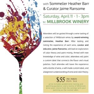 Join sommelier, Heather Barr, and curator, Jaime Ransome, in a sommelier-guided paint and sip experience where wine and art lovers are educated in wine tasting and color theory.
