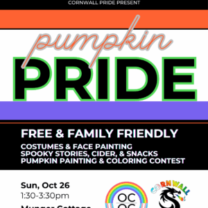 Cornwall Pride and Orange County Queer Collective will be hosting their 2nd-Annual Pumpkin Pride at Munger Cottage in Cornwall on Sunday October 26th.