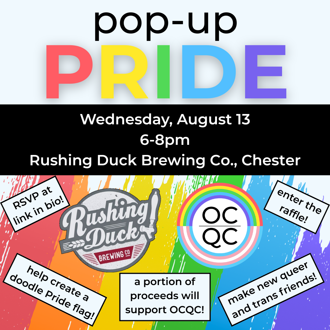 Join Orange County Queer Collective and like-minded folks in your community on Wednesday, August 13th for our monthly Pop-up Pride event at Rushing Duck Brewing Co. in Chester!