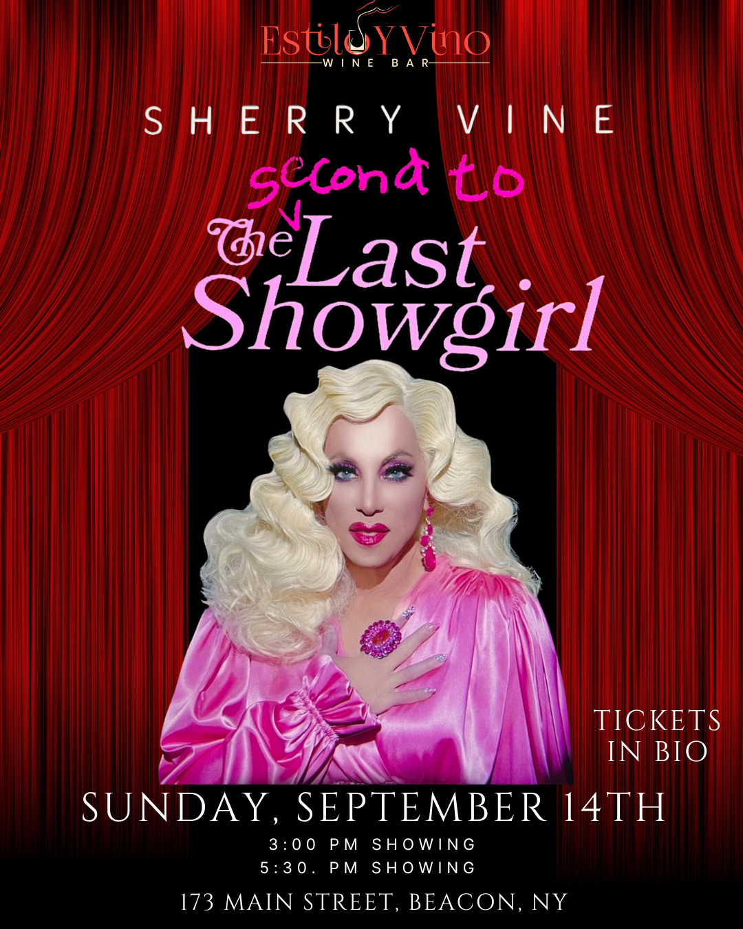 Get ready for a fabulous night at Estilo y Vino with the legendary Miss Sherry Vine! ✨ Sip on our carefully curated wines, indulge in delicious tapas, and enjoy an unforgettable drag show that will keep you entertained all day long. 🍷🍴👑 We’ve got two showtimes so you can catch the magic at the perfect hour. This one's for the grown-ups who know how to sip and serve 🍇🥂 👉 Follow us on Instagram for all updates and details @estiloyvinowinebar