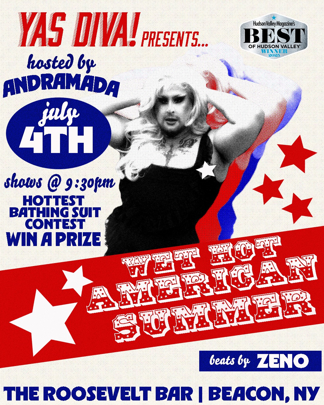 Get ready to sizzle, sparkle, and strut—because Andramada’s Yas Diva, voted Best Drag Show in the Hudson Valley two years running, is turning up the heat this Fourth of July!