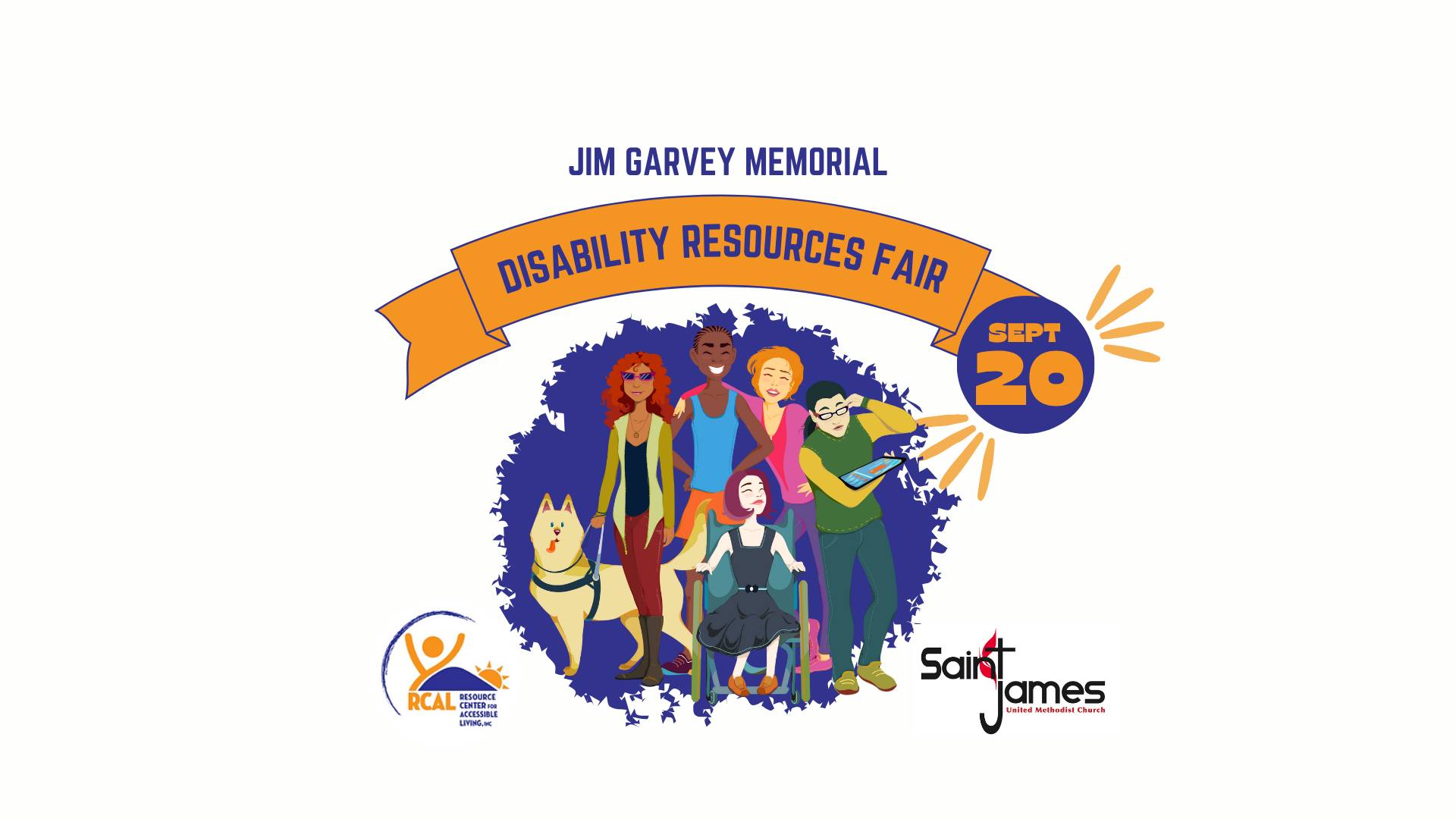 Come enjoy free workshops, resources, refreshments, and support at the Jim Garvey Memorial Disability Resources Fair on Saturday, September 20, from 10 AM - 3 PM. RCAL and St. James United Methodist Church are excited to welcome the community to this free event!