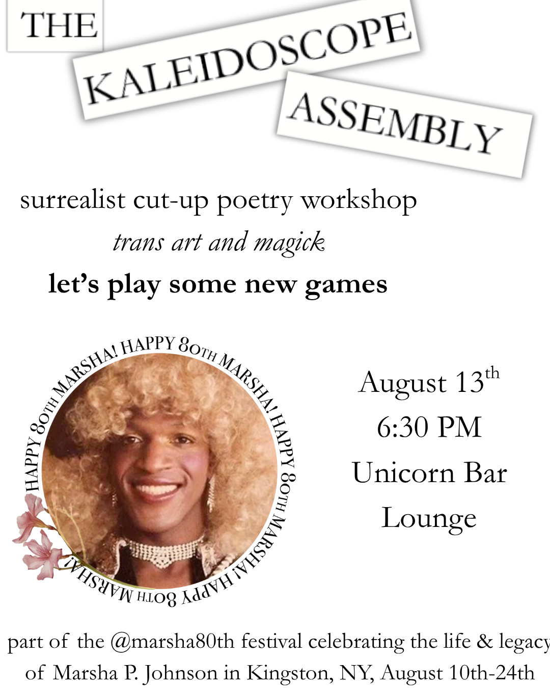 Part poetry workshop, part ritual, the Kaleidoscope Assembly is a surrealist exploration of the manipulation of the raw material of reality through queer art.