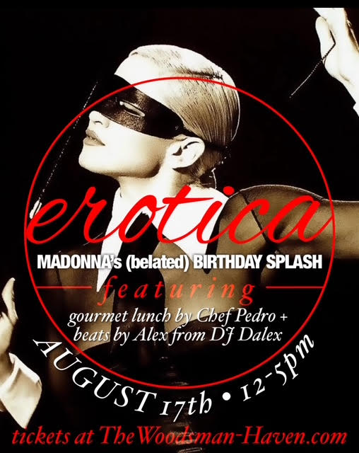 Have you heard the "Words"? We're celebrating "Where Life Begins" for one of the greatest divas "In This Life" at EROTICA: Madonna's (belated) Birthday Splash - a drag/ clothing-optional pool party on Sunday, Aug 17th at The Woodsman! Step "Deeper and Deeper" into our "Secret Garden" and celebrate the "Bad Girl" with us - Rain" or shine! Catch the "Fever" as Alex of DJ Dalex plays all your favorite Madonna tracks, and our resident "Thief of Hearts" Chef Pedro will be serving a gourmet lunch while you soak up the sun, the sights, and the Big Diva Energy. And when the party ends you'll be thinking "Why's it so Hard" to say goodbye. So, what are you "Waiting" for? "Did you do it?" Did you get your tickets yet? "Bye Bye Baby"... we'll see you there!